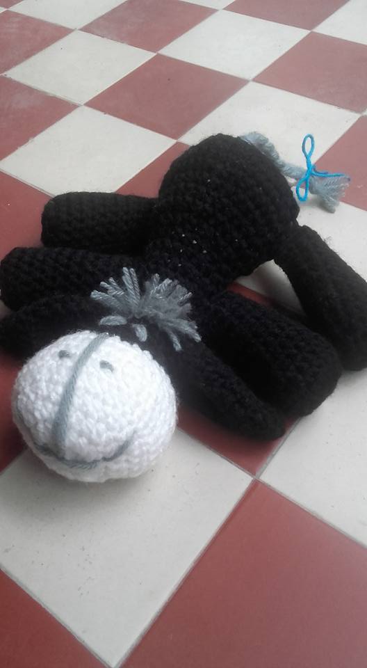 Egyik kedves kolleganőm megkért horgoljak a kisfiának,Gergőnek egy csacsit...A kék,nem az a kék,amit elképzeltem, így lesz egy fekete-fehér csacsi,ami hamarosan elkészül.